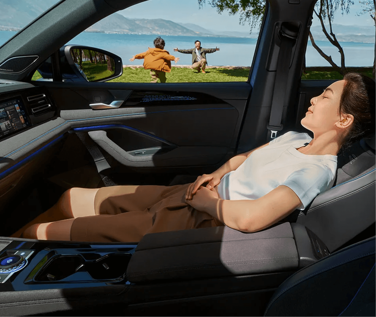 座椅舒适性与细节配置充分考虑家庭出行需求,主副驾配备仿皮座椅并支持10向电动调节+4向腰部支撑,同时标配加热、通风与按摩功能,其中按摩功能虽力度适中,但长途驾驶中能有效缓解驾乘疲劳。