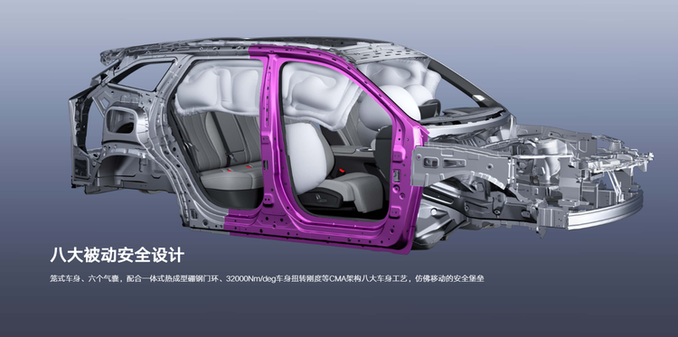 安全性能,笼式车身结构扭转刚度高达32000Nm/deg,关键部位采用1500MPa热成型硼钢,A柱抗弯强度提升40%。主动安全配置包含16项功能,预碰撞安全系统、盲区监测、后方碰撞预警一应俱全,百公里制动距离仅35.8米,连续制动热衰减控制在5%以内。发动机下沉技术配合6气囊与一体式热成型硼钢门环,为乘员舱构建全方位防护屏障。