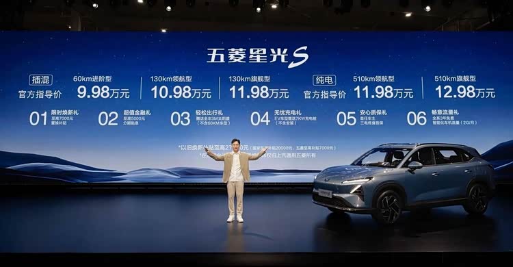 动力系统方面,五菱星光L将搭载插电式混合动力,1.5T和1.5L发动机最大功率分别为105kW/78kW,配备磷酸铁锂电池组,而具体的纯电续航里程则有待官方进一步公布信息。