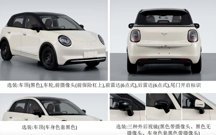 根据国家工信部发布的最新一批新车的申报信息,新款五菱宏光MINIEV的造型又变了,依然提供两门版和四门版,但是全新的前脸造型,前后均有镀铬饰条连接圆形大灯组,更可爱了,并且提供不同的轮毂盖和车身标识。