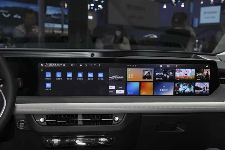 先说变化点:外观灯组略有改变,内饰变化稍微有点大,增加了物理按键和滚轮,另外中台这里改为悬浮式的设计,这一点有点像林肯Z。