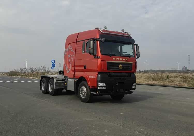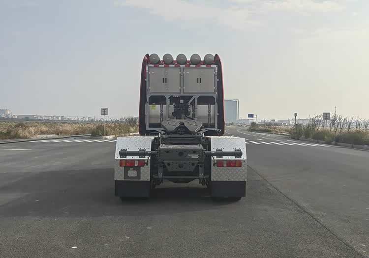 中国重汽本批新车也是颇具看点。其在传统能源领域,申报了一款大马力柴油牵引车,为汕德卡系列,产品型号为ZZ4256Y394HF1。该车驱动形式为6×4,整备质量达到惊人的13.3吨。外观看起来很是“强壮”,采用巨形车轮,驾驶室前下方的保险杠均采用了加强设计。令人惊讶的是,其油箱不在底盘侧部,而是“背”在驾驶室后方。显然,这是一款针对特殊应用场景专门研发的重磅车型。