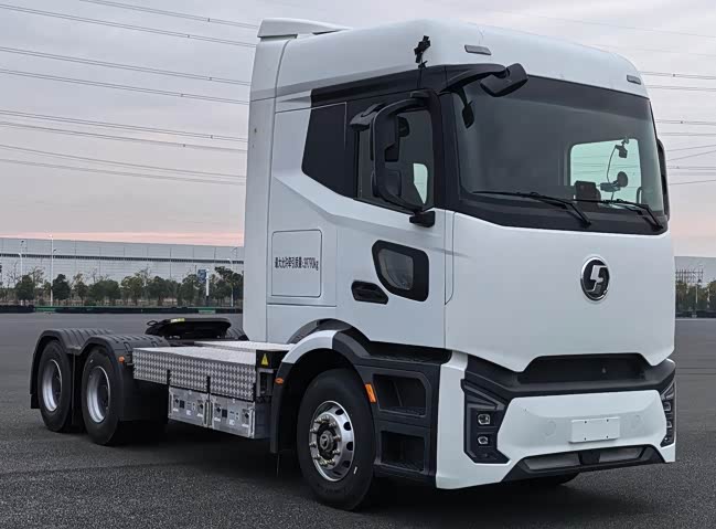 东风商用车另外2款牵引车为充电牵引车,从外观来看,一款为东风天龙KX系列,另一款采用新外观,从前脸隐约可见的“KL”标识,可知该车为东风天龙KL系列。2款充电牵引车储能装置均采用磷酸铁锂技术路线,电池底部布局,电池单体产自湖北亿纬动力、总成产自东风商用车;电驱动系统均配有双电机,由东风电驱动系统有限公司供应,两个电机型号均为TZ240XYT1H、峰值功率均为350千瓦。