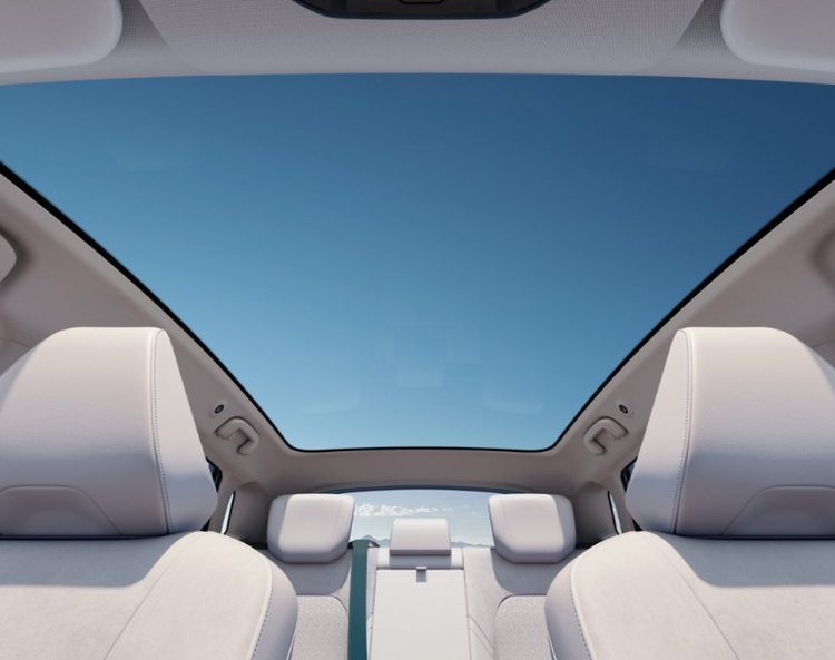 内饰也是相当抢眼,头顶是1.44平米的全景天幕,隔热做得不错,夏天不怕晒黑。