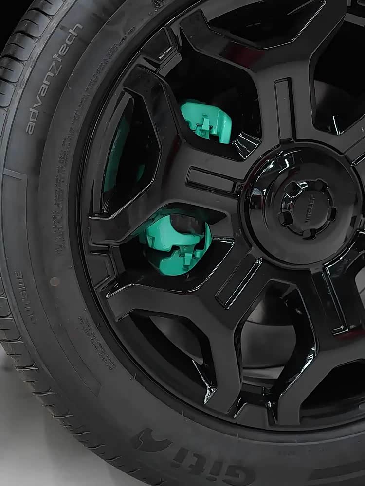 除了宽体部件,轮毂也是外观的一大亮点。它采用了亮黑相间的运动型轮毂,这种配色时尚又动感,在阳光下闪耀着独特的光芒。刹车卡钳则涂上了蒂芙尼蓝,这一鲜艳的色彩与亮黑轮毂形成鲜明对比,视觉冲击感瞬间拉满,让人一眼难忘。