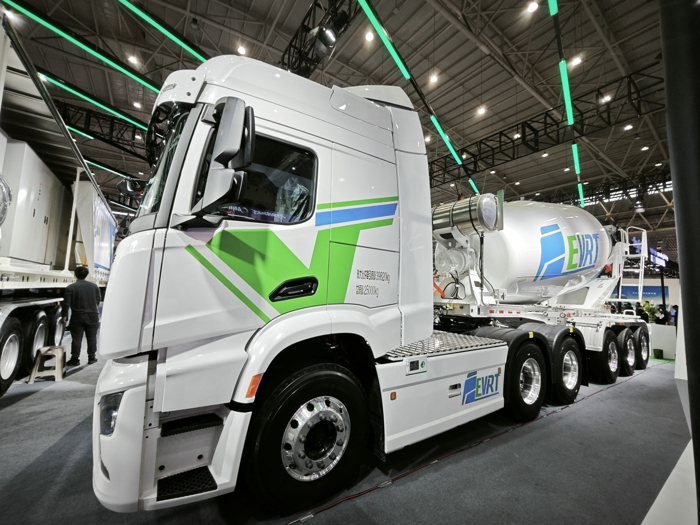 具体来看,中集车辆展出的两款EVRT纯电动头挂列车分别为EVRT-700纯电动头挂一体渣土车和EVRT-MIX纯电动头挂一体搅拌车。不同于传统的新能源重卡车型仅牵引车头电动化,中集车辆推出的EVRT纯电动头挂列车的半挂车部分也实现了电动化,搭载了电驱桥。