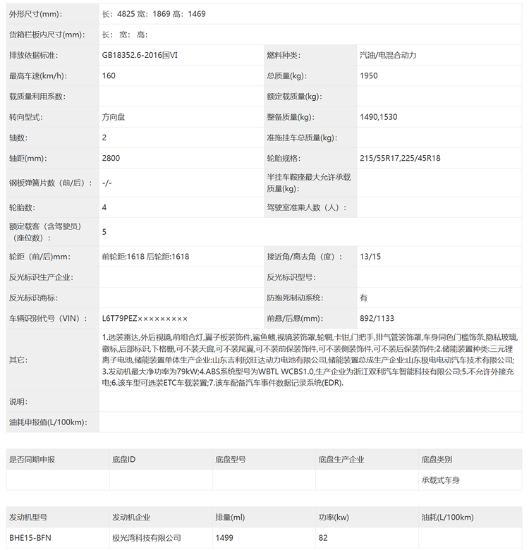 换装1.5L发动机 新款吉利星瑞混动版申报 外形回归传统