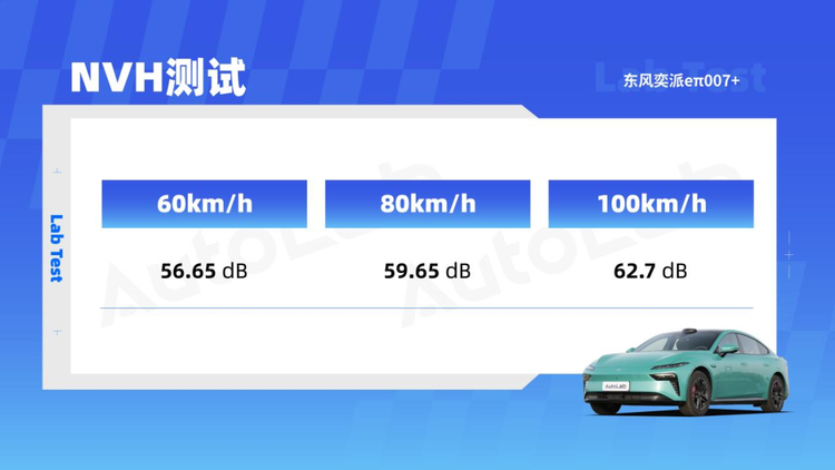 在这种条件下车内NVH在100km/h速度下还能保持在62.7dB的水平反倒是有些意外。