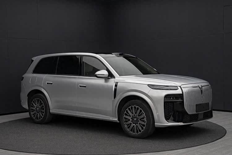 具体来看,外观方面,前脸部分延续了一部分泰山的设计理念,但夸张的多边形大嘴格栅,采用了完全车身同色的中网填充,红色车漆就是红色面板,银色车漆就是银色,没有多少镀铬材质,是最主要的不同,而左右两侧依旧是双层大灯组,上方的日行灯并不开眼角,要更远一些,下方则是直通大嘴的远近光灯,显得更为个性,前保险杠部分梯形下格栅引出了巨大的雾灯区装饰,配合镀铬条,增强了大气感,车顶激光雷达不会缺席,毕竟是次旗舰车型。