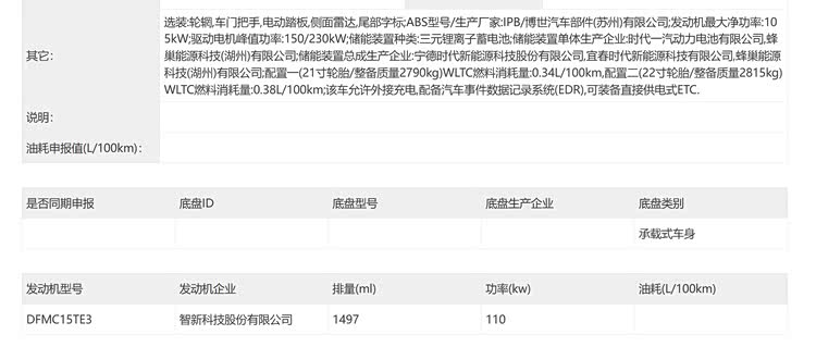 最终车身三围达到5200/2025/1814毫米,轴距为3090毫米,只是在长度和轴距方面比泰山各少了30毫米,宽度和高度几乎相同,其实区分非常的不明显,反过来说重叠度很高,不知道官方有着怎样的分配。而在动力方面,申报的两款车型都搭载了插电混动总成,1.5T发动机最大功率150马力,与之匹配的是前后双电机组成的电控四驱系统,最大功率分别在496和517马力,也只是比泰山略低一些,配置的差异点可能会体现在电池方面,但目前还无法看出,只知道是来自宁德时代和欣旺达的三元锂电池及磷酸铁锂电池组,未来能有怎样的表现,非常值得期待。