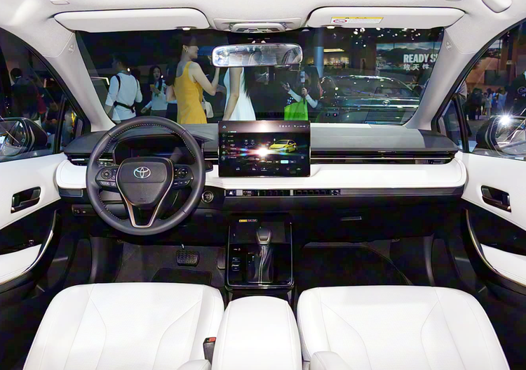 新车内饰更简约了,采用传统换挡杆,8.8英寸仪表盘采用内嵌式布局,升级12.9英寸悬浮式中控屏,标配Toyota Pilot驾驶辅助系统。