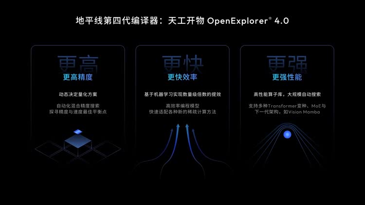 所以我们第四代编译器天工开物的4.0,将会走向更高的精度、更快的效率和更强的性能。