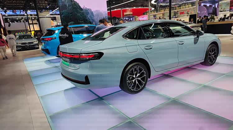 前脸的造型比较简洁,采用了贯通式的头灯组,提供可发光的车标,视觉效果比较有高级感,前面板采用了封闭式的面板,尺寸也是较大,前包围运用了横条式的格栅造型,整体的前脸设计简洁又高级。侧面有着修长的车身造型,采用了传统的门把手,轮毂的设计也是偏向运动。尾部提供贯通式的尾灯组,造型还是有着高级感,尾部带有ePro的标识。