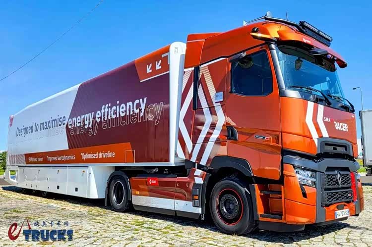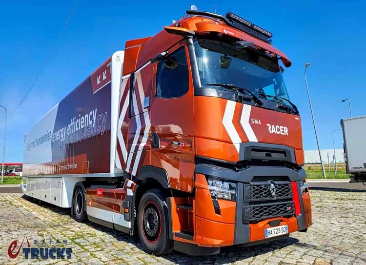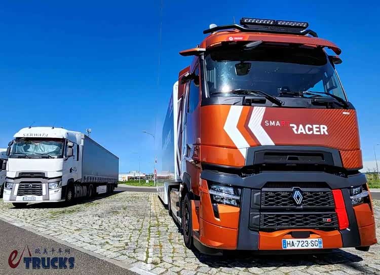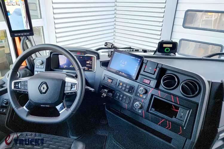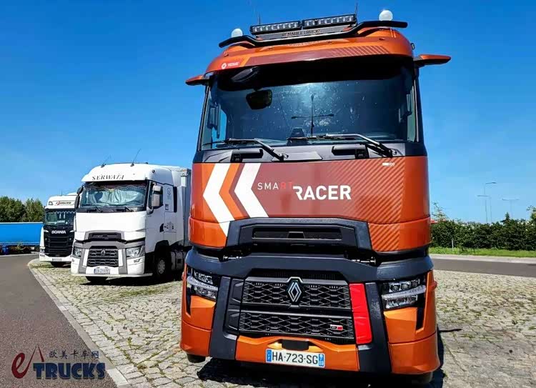 值得一提的是,这台雷诺T-High并非普通版本,而是顶级的Smart Racer 版本。其名称寓意“智能竞赛者”,象征着雷诺卡车在技术与性能上的最高水准。为与普通版车型形成区别,Smart Racer 版本配备了专属定制的遮阳板与车顶灯架,进一步凸显其独特的外观辨识度与旗舰身份。