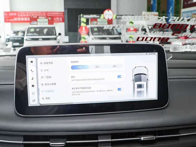 进入车内,大家9 EV的内饰采用了家族化的最新设计风格,整体氛围追求简洁与实用。座舱内配备了一块7英寸的全液晶仪表盘和一块12.3英寸的悬浮式中控触控屏,构成了车辆信息与娱乐交互的核心。方向盘采用平底造型,并配备怀挡式换挡机构,释放了中控台下方空间,也提升了操作便利性。