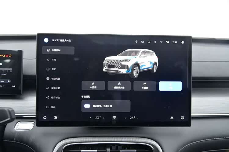 中控屏是一块15.6英寸触摸屏,使用的是骁龙8155芯片,系统为奇瑞自己的雄狮OS,整体流畅度没什么问题,功能也非常主流,并且还支持L2级别的辅助驾驶。