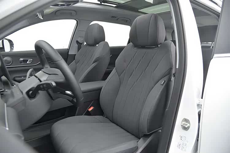 全系标配皮质包裹座椅,包裹性一般,中高配车型有座椅加热通风功能,高配还支持座椅按摩及主驾驶头枕音响。