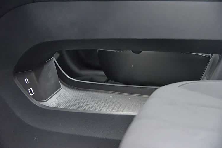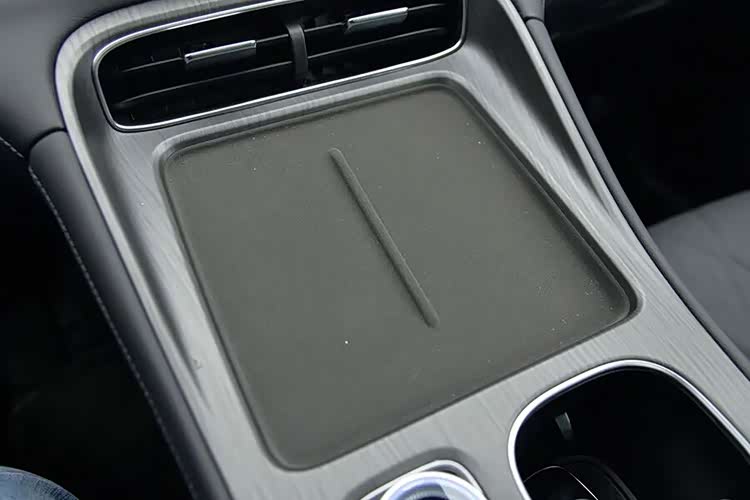 因为没有了传统的换挡杆,中央的空间腾了出来,配有两个手机储物格,但只有高配车才有50瓦无线快充,其余车型没有无线充电。