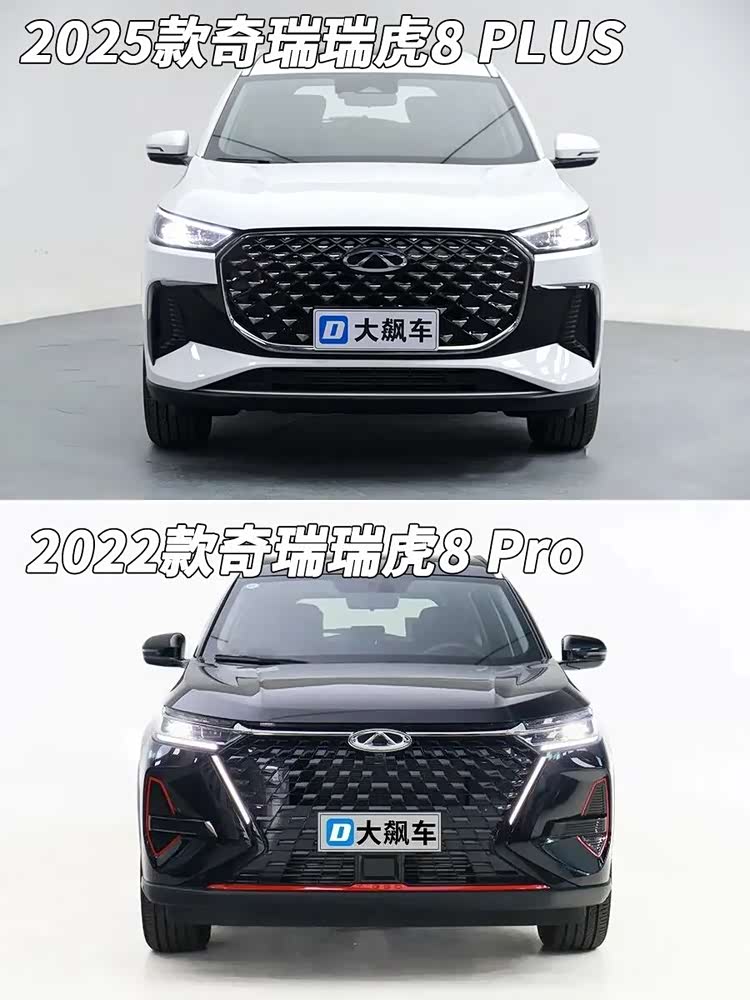 相比老款瑞虎8 Pro,都是典型的燃油车设计,大尺寸的前进气格栅采用点阵样式。