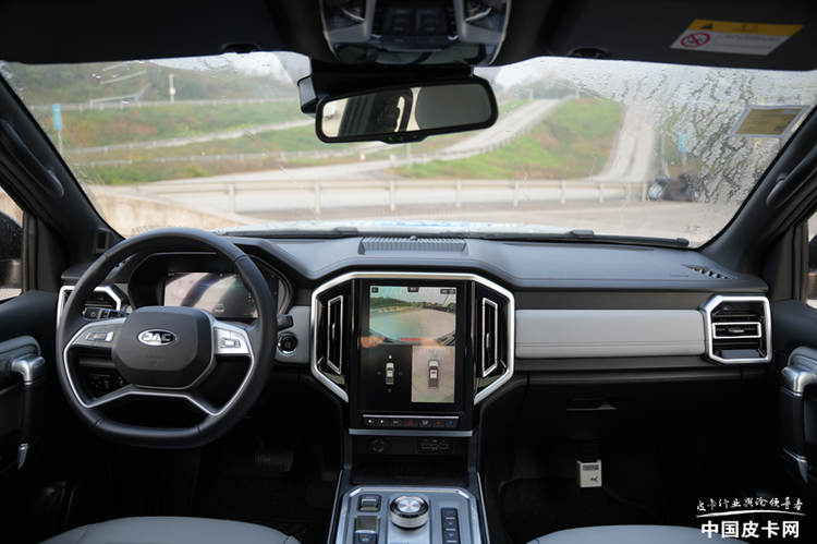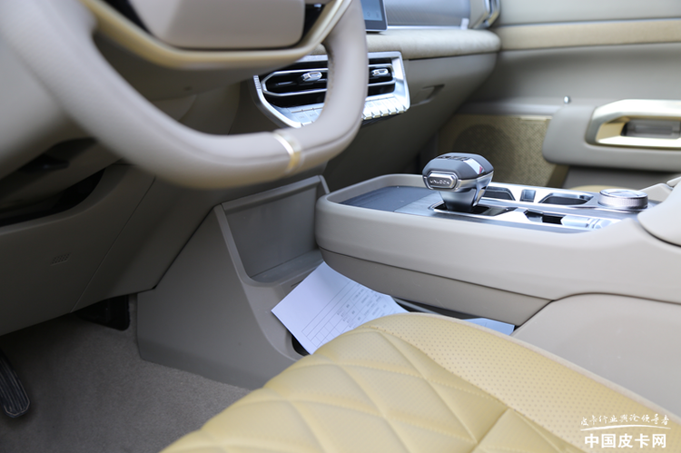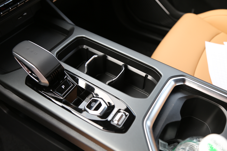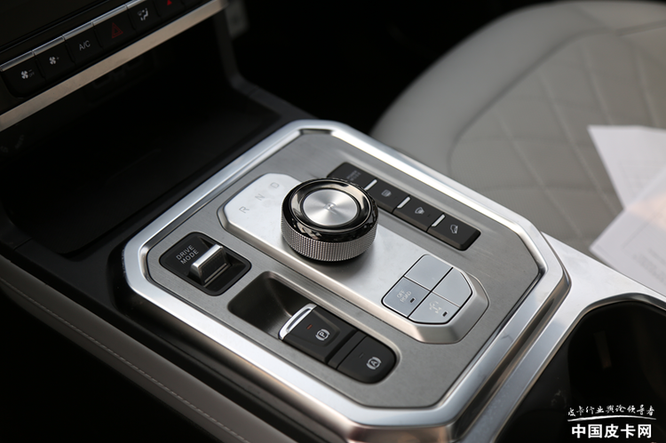 由于有了电力的加持,江淮悍途PHEV相比燃油车也有比较细微的变化,而这个变化也符合提升车内空间利用率的目的,那就是将中控台部分的换挡机构换成了旋钮换挡。相比传统的换挡杆,旋钮会更加节省空间,并且不影响用户对前面的大屏幕、空调按键进行操作,底部也更容易放手机、钱包等零碎物品。