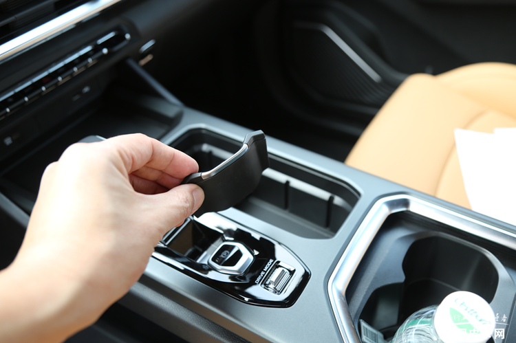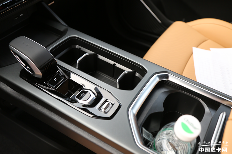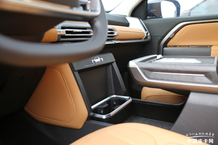 雷达地平线PHEV这款新能源皮卡也在本次活动中出现,相比雷达PHEV,这台车虽然也有商用用途,但整体更偏向家用,也有不错的设计。在副仪表板处,就有可拆卸的水杯隔断。如果放较大的物品,可以将隔断拆开;如果放水杯等比较小的物品,用户可以自己拆装形成合适的储物格。