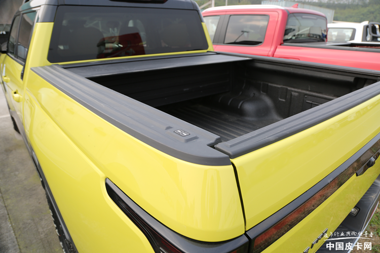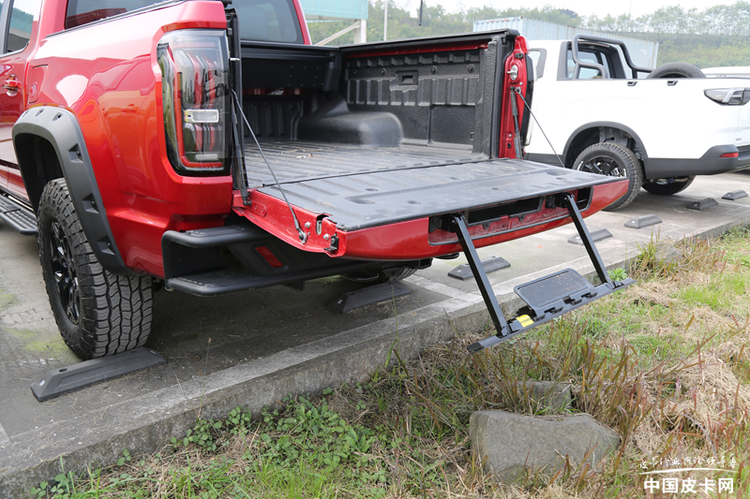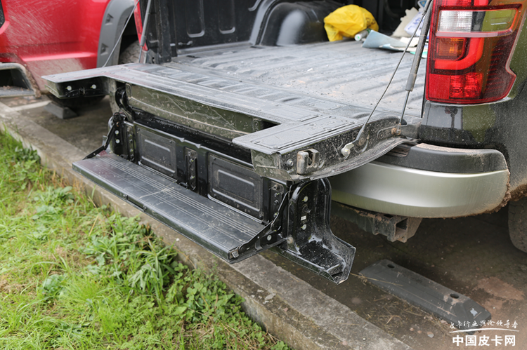 货箱部分也有独特的设计,例如电动货箱盖的开关位于货箱侧面,非常容易识别,开关简单。而且在尾门打开时,左下方还会伸出一个踏板,方便上下货箱。