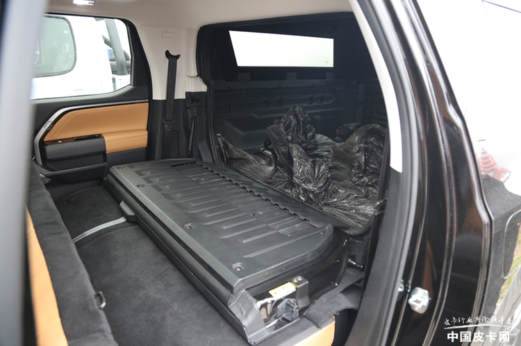 除此以外,由于这台车是真乘用版,货箱部分带有货箱盖,为了与乘员舱连通,它还具备可放倒的货箱隔板。将第二排座椅靠背放倒+货箱隔板放倒后,后排就与货箱连通形成了一个巨大的储物仓,那就有了更大的发挥空间,无论是长途出行装货或者当做床,亦或是短途拉大件物品,星际X真乘用版都能拉得下。