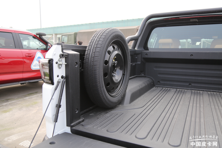 而且还有一个亮点,就是它的备胎位置,设计在了货箱侧面。这样的设计虽然会占用货箱空间,但对于并不是纯拉货使用的皮卡来说影响不大,而且还方便拿取。