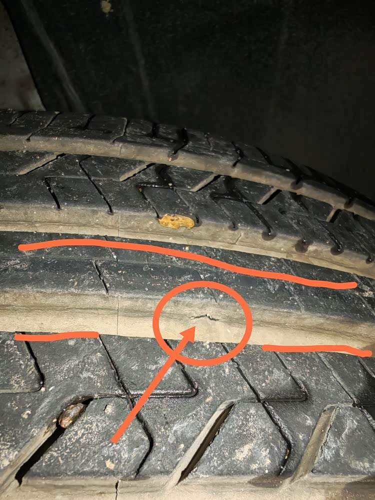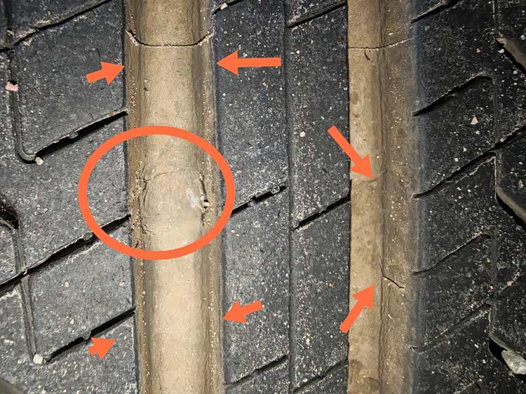 外伤性开裂则是由于撞击、刮擦异物导致,形状和位置通常没有规律,往往比较深,甚至可能伤及内部的帘布层。