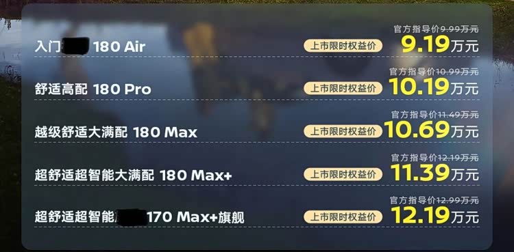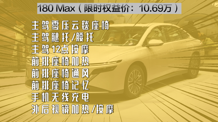总体来说,还是油车轩逸的这种水平,没有太多的舒适性和科技配置。主打好用不贵,经济实惠,续航和动力,跟中高配比,没有缩水,然后价格9万出头。后续这个配置,或许也有很多人想买,但前期应该没什么产能,现在下单也没有购置税兜底的政策。而中配180Pro版和180 Max版,15号之前下单,是有5000元购置税兜底的。