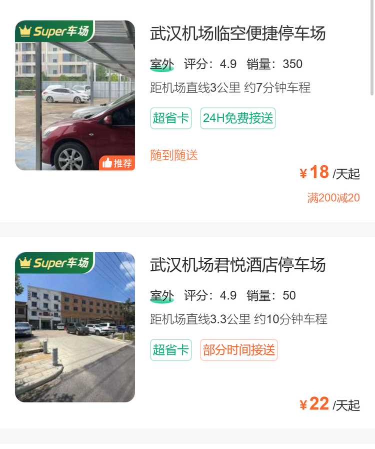 虽说机场没有免费停车位,但其实在机场附近有不少便宜的停车场,收费只要18到25左右一天,而且停车场还包接送。要想看看有哪些停车场、哪个离机场近、怎么收费,可以用淘车位小程序来查看。