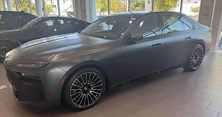 外观设计上,新车延续了宝马家族的经典元素,同时融入现代科技美学。标志性的双肾型进气格栅采用直瀑式熏黑处理,既保留了品牌辨识度,又通过深色涂装强化了视觉冲击力。分体式LED大灯组内部结构经过重新设计,日间行车灯带以折线造型呈现,点亮后犹如锐利的目光,科技感与攻击性并存。车身侧面线条流畅而富有张力,从前翼子板延伸至尾灯的隆起腰线,勾勒出蓄势待发的动态姿态。入门版标配20英寸轮毂,高配版则提供21英寸五辐式运动轮毂,满足不同用户的审美需求。隐藏式内凹门把手设计不仅降低了风阻系数,更让车身侧面线条更加简洁流畅。3215mm的超长轴距为车内空间提供了充足保障,无论是前排驾驶者还是后排乘客,都能享受宽敞舒适的乘坐体验。车尾造型以简洁大气为主,L型尾灯组经过黑化处理,与隐藏式排气布局相呼应,凸显出旗舰车型应有的稳重气质。