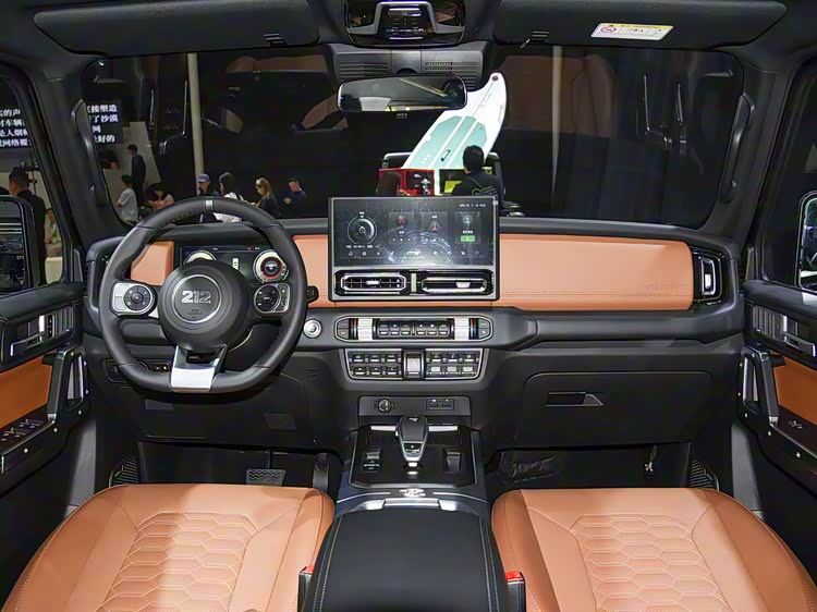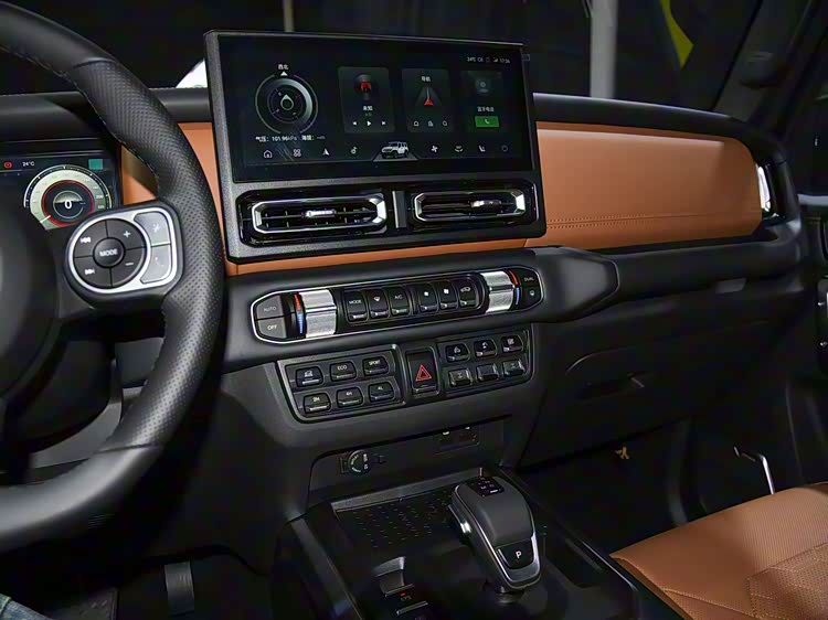 走进车内,内饰空间在保持硬派风格的同时,巧妙地融入了现代科技元素。10.25英寸的全液晶仪表与12.3英寸的中控屏,组成了双联屏系统,支持高德地图导航及CarPlay/HiCar手机互联功能,让驾驶者在越野的同时,也能享受到智能化的便捷体验。为了确保越野场景下的操作可靠性,空调控制区与差速锁控制面板保留了实体按键布局,旋钮阻尼更是经过了3000次耐久测试,确保在各种恶劣环境下都能稳定可靠。标配的前后驻车雷达与360度全景影像系统,通过6颗高清摄像头实现5米内障碍物识别,配合透明底盘功能,让驾驶者在狭窄路段行驶时也能倍感安心。