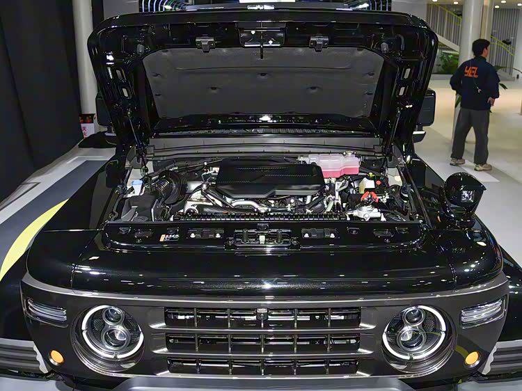 外观设计上,柴油版车型在保留经典方盒子造型的基础上,进行了更为深度的强化。重新设计的发动机盖,增加了双通风口造型,不仅提升了散热效率,更在视觉上带来了强烈的冲击力。加宽至920mm的镀铬中网,内部采用竖条幅格栅,再配合可选装的隐藏式绞盘支架,展现出专业越野装备的机械美感,让人一眼就能感受到它的不凡实力。车身数据方面,43°的接近角与36°的离去角,配合256mm的最小离地间隙,使得这款车能够轻松征服450mm高度的垂直障碍。而原厂状态下850mm的涉水深度,在同级车型中已属领先,若选装涉水喉后,更可提升至910mm,满足溪流穿越等严苛场景的需求。