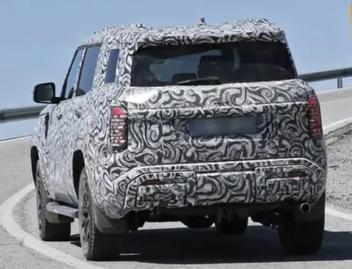 外观上,新车采用时下流行的“方盒子”车身设计,硬朗且力量感十足。大尺寸车身搭配简洁有层次的线条,尽显独特魅力。前脸分体式头灯组增强辨识度,大面积前格栅冲击力强,彰显越野气息。车侧魁梧,尺寸预计增大,空间更宽敞,取消外挂式后备胎,车尾更简洁现代。贯穿式尾灯组经黑化处理,点亮后辨识度高,强化运动与科技感,既保留硬派越野精神,又更具时尚感。