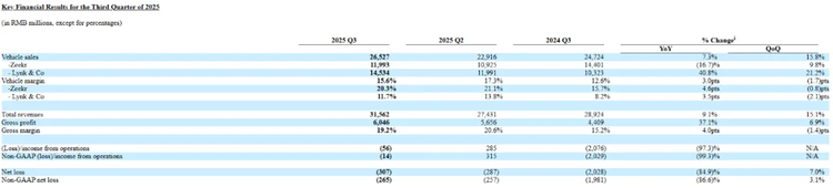 2025年第三季度,极氪已经进入整合阶段的转折点,交付新车5.286万辆,营收119.93亿元,单车均价22.69万元,毛利率达20.3%;同时净亏损3.07亿元,同比大幅缩窄84.9%,此前的投入逐步转化为盈利动能,盈利能力显著提升。