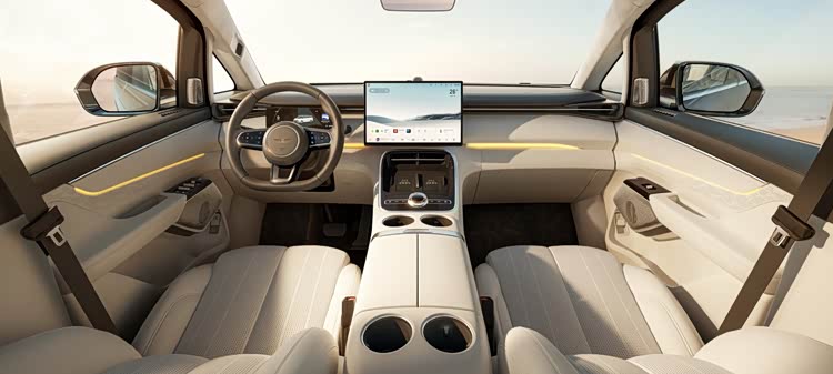 具体空间参数表现亮眼:第二、三排纵向空间均超过1米,第三排坐垫宽度达1290mm,靠背最大调节角度137°,并提供180°躺平选装功能,有效改善了第三排乘坐体验,实现“全员平权”的空间设计理念。后备箱容积达1100L,可容纳15个20寸登机箱,满足家庭出行的储物需求。车内垂向高度达1.3米,配合纯平地台设计,提升了车内活动空间灵活性,尤其适合家庭带儿童出行时的使用场景。