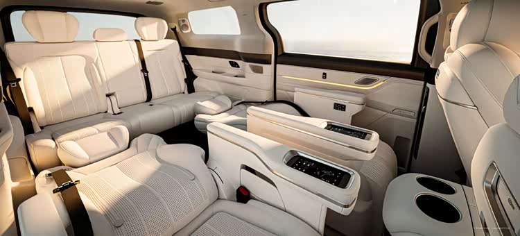 这一技术优势直接转化为用户可感知的经济性:1升油可发电3.77度,发电成本低至1.9元/度,接近“油电同价”水平。“星睿AI云动力2.5系统”作为行业首个动力域智能体,实现三重智慧管理:AI能量控制可基于导航与驾驶习惯预判需求,目的地有充电桩时额外释放3%电量增加7.1公里纯电续航,馈电时自动切换功率跟随模式保障155km/h极速;AI四驱管理能毫秒级切换驱动模式,单电机故障时无缝转移动力;AI能耗管理支持智能波谷充电与电池养护,可提升电池寿命15%。动力系统布局上,行业唯一的前后双电机四驱方案配合90kW峰值功率的P1发电机(行业第一),形成强劲动力储备。P1发电机采用短时过载强化技术与高效散热系统,急加速等高负载场景下电力供应充足,实现“满电动力稳,馈电不掉线”的驾驶体验。续航表现方面,CLTC纯电续航240km满足日常通勤,满油满电综合续航突破1200km,可覆盖北京至杭州单程无补能需求。空间革新,打破传统MPV的乘坐局限第三排空间局促是传统MPV的普遍短板。银河V900通过首创的增程电驱“叠竖布局”,将前动力总成体积压缩至0.4立方米,为乘员舱拓展出近150mm纵向空间,车内“得房率”高达91.8%,这一数据在MPV领域处于领先地位。