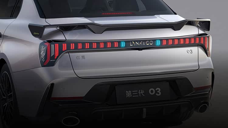 尾部是运动属性的核心表达区,普通版配备战斧式风刃尾翼,03 + 版本则配备三段可调碳纤维尾翼,高速行驶时能产生稳定下压力,同时搭配碳纤维前唇套件与熏黑轮圈,运动风格鲜明。排气布局上,普通版采用双边共两出排气,03 + 版本升级为双边共四出式排气,配合声浪控制功能可调节排气声浪。