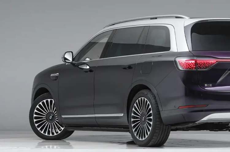问界M9的气场体现在实车上,不仅高还很长,虽然设计上有点保守一些,但我觉得更符合老板的身份。特别是双拼色也让问界M9变得更有层次感,视觉感受上可以带来更高级的豪华感。并且在D柱位置也一体化设计,就让车身轮廓有了更高级的悬浮效果。在A柱位置也配有摄像头,在后视镜下方也有摄像头,前后均配有感知摄像头,搭配上21英寸多幅式轮毂之后,也让侧面显得更高,使得整车的通过性更好。问界M9配多层隐藏玻璃,在静谧性和隐藏方面都符合老款的需求。车尾造型还是比较保守一些,但它的尾灯特别有看点,中间也有LED灯带贯穿“AITO”LOGO,所以尾部的辨识度依旧很高。而且它后备箱支持感应开启,语音自动开启等功能,尾灯功能与前灯一样可以定制图案或者文字,所以问界M9的可玩性蛮高的。尺寸方面为5230*1999*1800毫米,轴距为3110毫米。