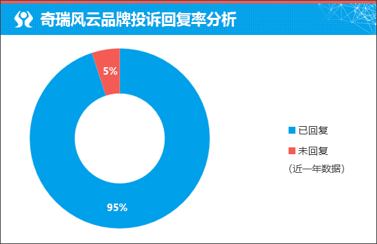 在衡量新车售后服务口碑方面,我们将通过企业对于车主投诉的回复情况进行分析,相对客观地对于新车未来的售后服务口碑有所预判。据车质网数据显示,近一年奇瑞风云品牌的投诉回复率为95%,可见厂家对于车主的诉求较为重视,对于已出现的问题解决态度比较积极。