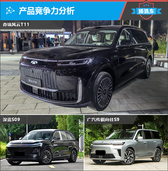 奇瑞 风云T11(参数|询价)定位为大型SUV,考虑到售价区间,纵观整个国内市场都很难找到合适的竞品,其中最符合标准的有且只有深蓝S09。选择广汽传祺向往S9的理由是价格相近,不过由于其定位为中大型SUV,因此无论是车型定位还是车身尺寸,相较奇瑞风云T11和深蓝S09,确实都存在一定差距。