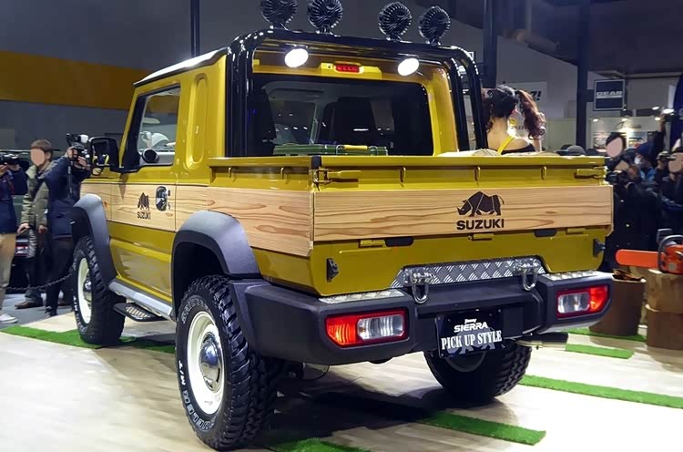 在2019年的东京改装车展上,铃木在展台中带来了一款吉姆尼SIERRA皮卡风格概念车,让许多玩家朋友看到了将吉姆尼改造成皮卡的可能。在整体风格上,其基于长轴距版车型打造,保留了吉姆尼经典的“方盒子”造型,但该车通过拆除后排座椅、重新设计车顶等方式,重塑了整台车的结构,腾出更大的空间打造了一个实用的货箱,让该车在装载能力以及可拓展性上相比于传统封闭式SUV得到了大幅度提升。