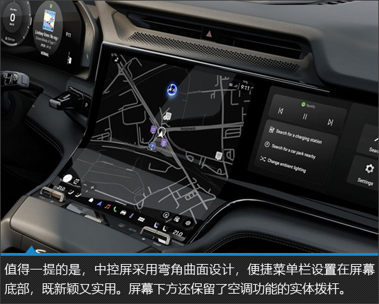 全新的内饰配备了众多屏幕,中控屏还采用了行业鲜有的弯角曲面设计,配合全新的车机系统,新潮感受、智能体验瞬间拉满。对于驾驶者来说,三辐式多功能方向盘造型运动,可选装的87英寸AR HUD显示信息也很丰富。