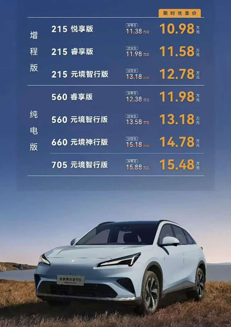 总的来说,10.98万起售,你就能得到在空间、舒适、能耗、静谧性、动力和智能这多个维度上,都做到了同级领先或主流以上的水平的阿尔法T5。如果你正在寻找一台能彻底告别里程焦虑,同时在体验上无限接近纯电,还能享受前沿智能驾驶的车型,那么阿尔法T5增程版无疑是一个必须仔细考量的重磅选项。