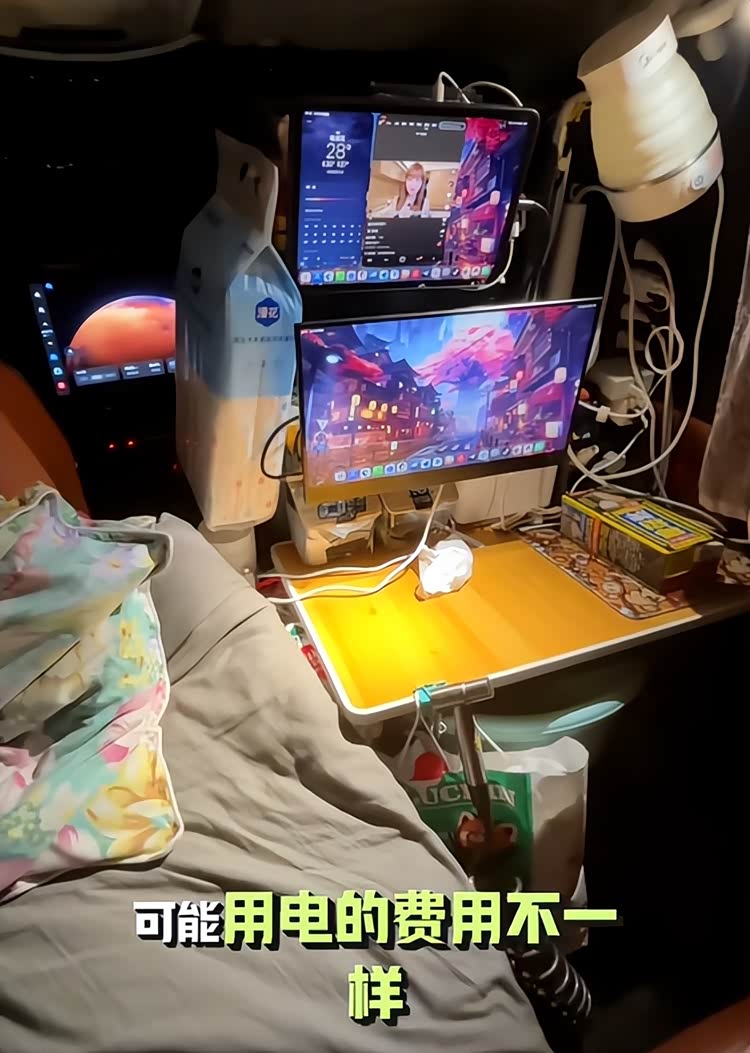 甚至还有人直接住在车里,省去了在外地工作时租房、买房的费用,相当自在。