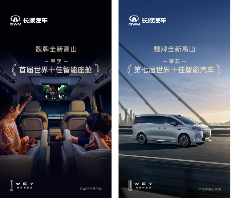 在智能化层面,魏牌高山同样处于行业前沿。近期,其凭借出色的智能座舱与全场景智能驾驶能力,一举荣获《汽车评价研究院》“首届世界十佳智能座舱”与“第七届世界十佳智能车”两项权威大奖,充分验证其作为“全家人的智慧移动空间”的科技实力。