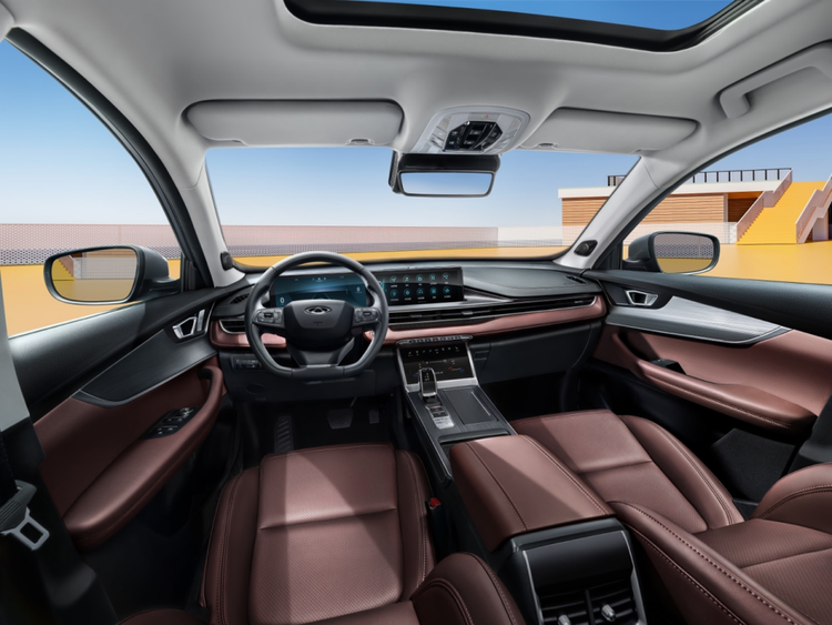 车内空间布局合理,后排乘客可轻松舒展双腿,多备几件羽绒服也不在话下。豪华皮质座椅触感柔软细腻,搭配 D 型多功能皮质方向盘,握感与坐姿双双在线,长途乘坐也能有效缓解腰背疲劳。通透的全景天窗在雪天行车时很是浪漫——抬头便能看到漫天飞雪落下,让冬日旅途更添几分惬意。