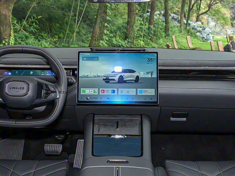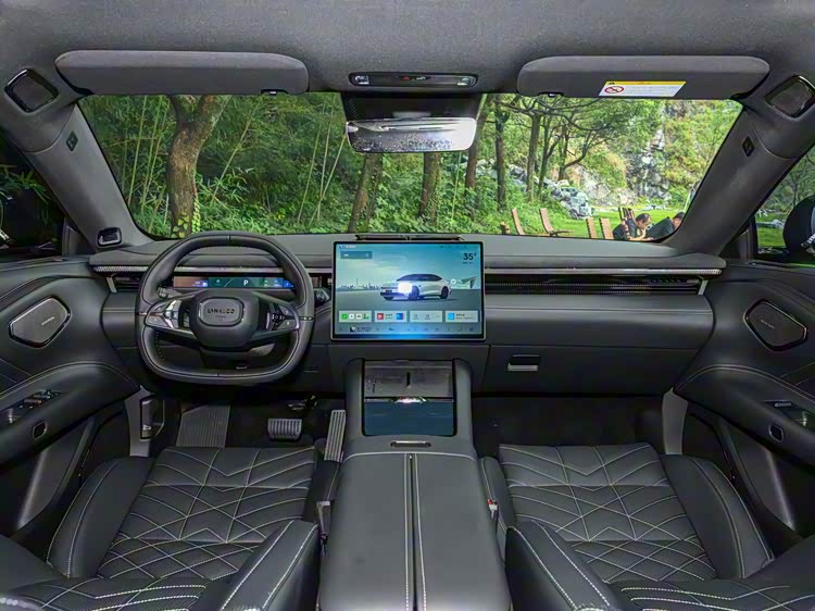在内饰设计方面,领克10 EM-P继续沿用了简洁且现代的设计风格,配备了12.66英寸液晶仪表盘、15.4英寸的中控屏和25.6英寸的HUD抬头显示屏,三者组合提供了极为丰富的信息显示,确保驾驶员能够轻松获取必要的行车信息。