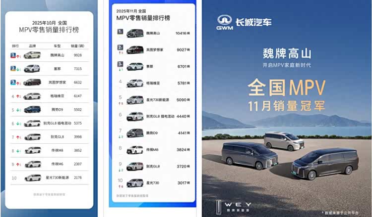 当一款车连续两月销量破万,在高端MPV这个长期由合资品牌定义的市场中,它书写的已不仅是销量故事,而是格局重塑的信号。魏牌高山在11月再度登顶中国MPV销量榜首,正式标志着市场话语权向中国品牌的深刻转移。